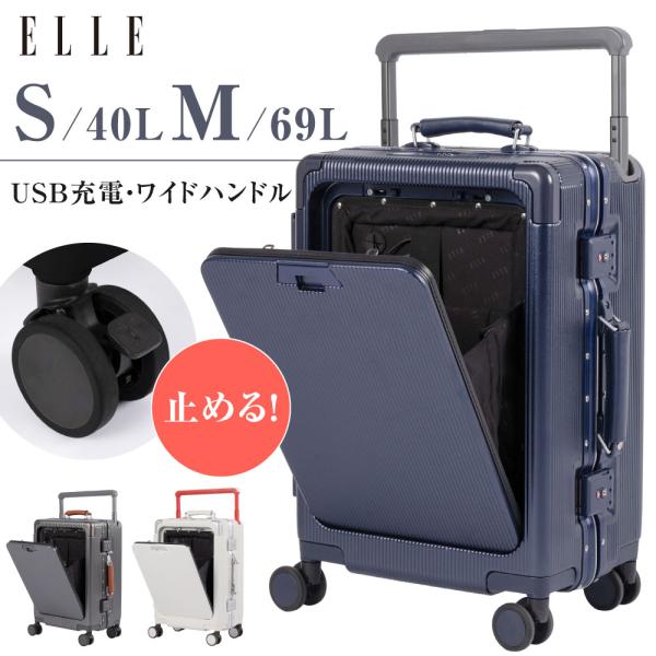 前開き スーツケース USBポート付き ストッパー付 キャリーケース キャリーバッグ 3カラー選ぶ Mサイズ 4-7日用 泊まる 軽量設計 大容量 旅行 scelle01-24