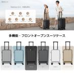 [ストッパー付き ドリンクホルダー] スーツケース 機内持ち込み キャリーケース フロントオープン USB/Type-Cポート付き S M 軽量設計 大容量 修学 旅行 1年保証