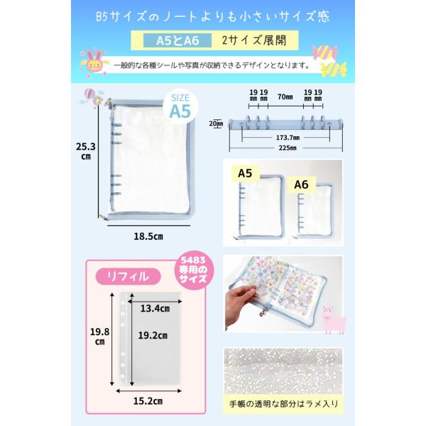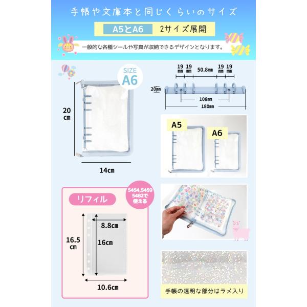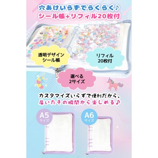 シール帳 シール バインダー A5 A6 大きいサイズ 透明 クリア ラメ入り【リフィル20枚付】 大きめ シールバインダー リフィルのみ有 はがせる シール手帳