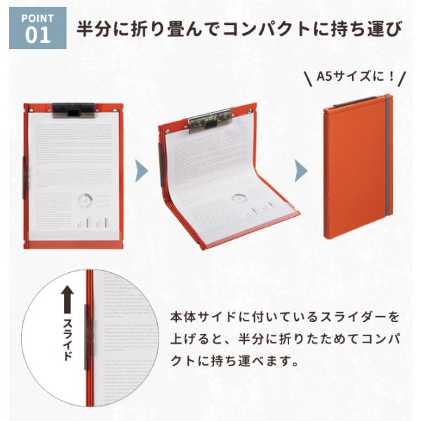 リヒトラブ Mutual 二つ折り クリップボード A4 折りたたみ A5に折り畳める 持ち運び 縦型 書類 バインダー ファイル 日本製 A-2068 2点迄メール便OK(si1a194)