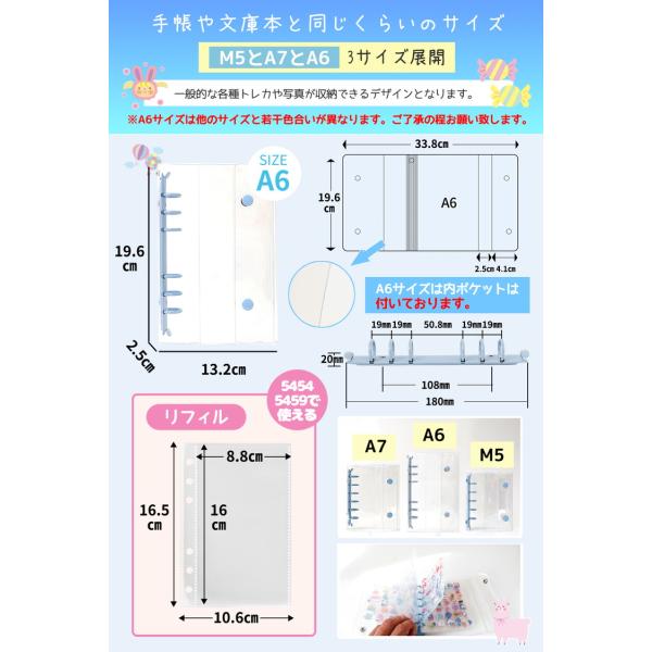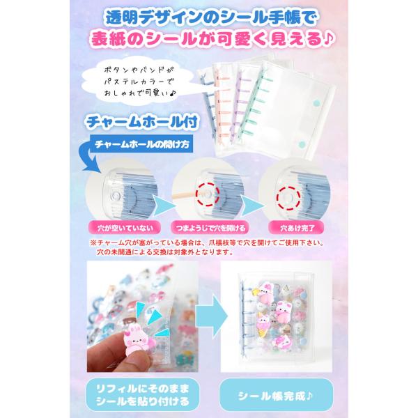 シール帳 \3点目99%オフ2点目50%オフ/ バインダー シール 台紙 M5 A7 A6 リフィル10枚/30枚付 透明 はがせる シール手帳 5穴 6穴 女の子 男の子