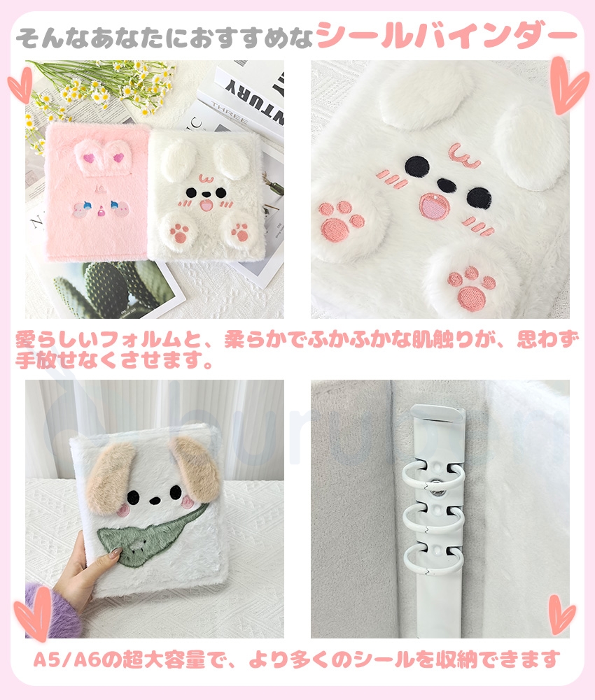シール帳 A6 A5 バインダー A6サイズ A5サイズ ふわふわ 動物デザイン 犬 ウサギ 可愛い 手帳 シールバインダー シール帳 女の子向け カラフル 黄ばみ防止