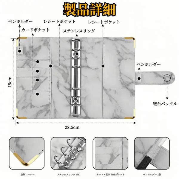 家計管理 ポーチ ケース A6サイズ 【ハレゾラTBP公式店】 バインダー 家計簿 PUレザー かわいい メモ帳用 6穴リングルーズリーフ スラスチャックポケット ●