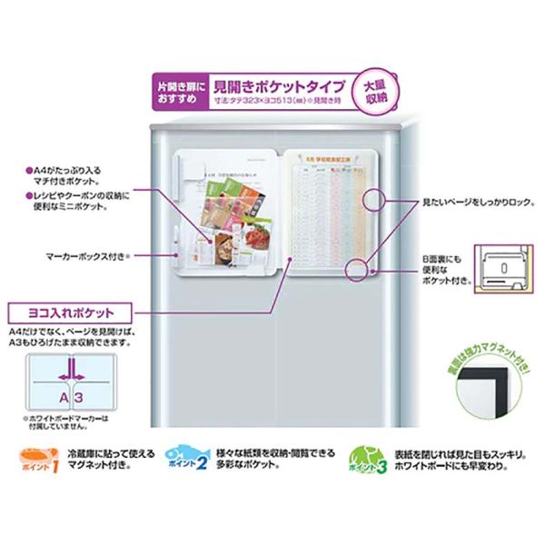 キングジム KING JIM スキットマン 冷蔵庫ピタッとファイル(見開きポケットタイプ) 2921 シロ