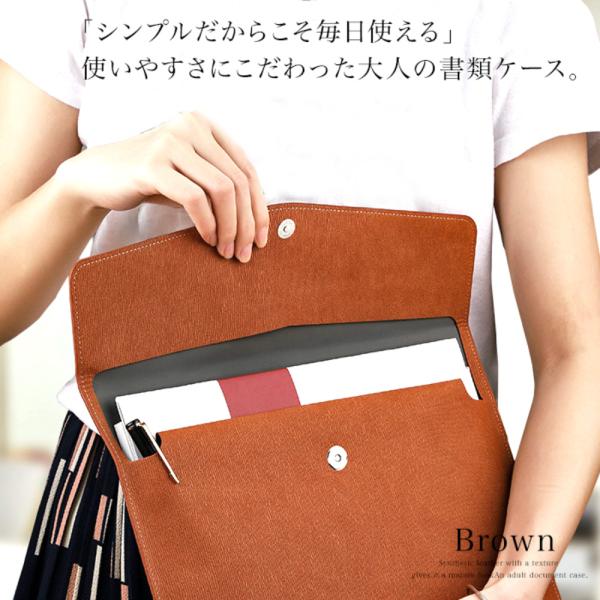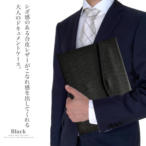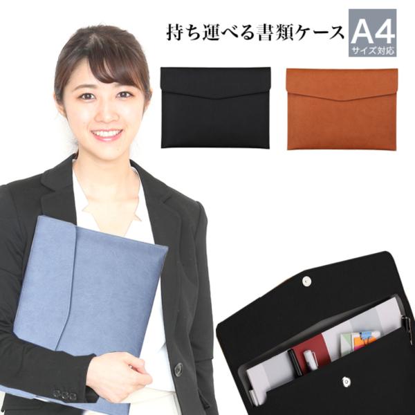 書類ケース 持ち運び ドキュメントケース ドキュメントファイル a4横 無地 横型 レザー 大容量 重要書類 契約書 高級感 PUレザー ブラック ロゴなし 無地