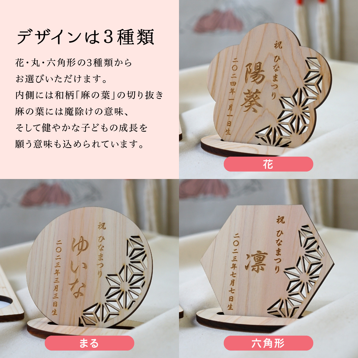 ひな祭り 名前札 初節句 名前旗 ひのきのお名前プレート 日本語 名入れ 飾り ひなまつり おひなさま お雛様 木製 イラスト おしゃれ