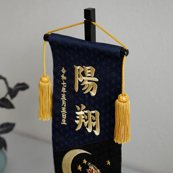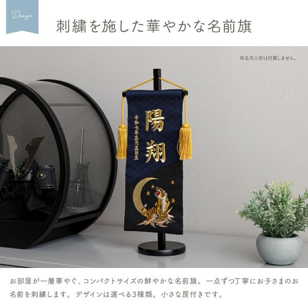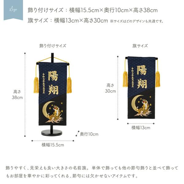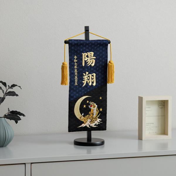 名前旗 男の子 刺繍 五月人形 初節句 コンパクト 刺繍名前旗 中 黒藍 kuroai 選べる3種類 節句 5月人形 端午の節句 虎 鷹 龍 紺 黒