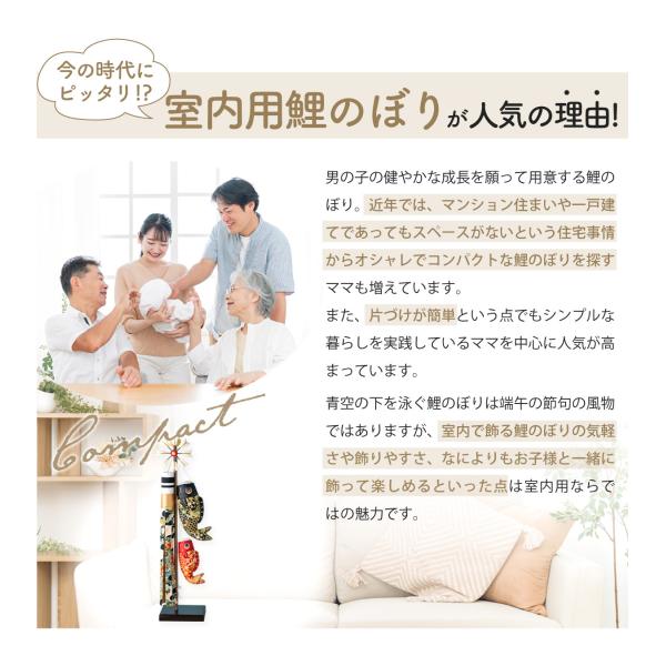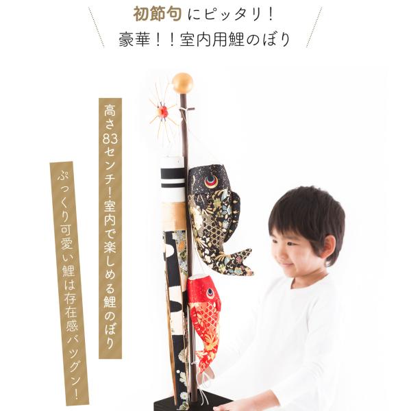 鯉のぼり 室内用 おしゃれ コンパクト こいのぼり 五月人形 ちりめん 兜 スタンド金襴鯉のぼり 大 リュウコドウ