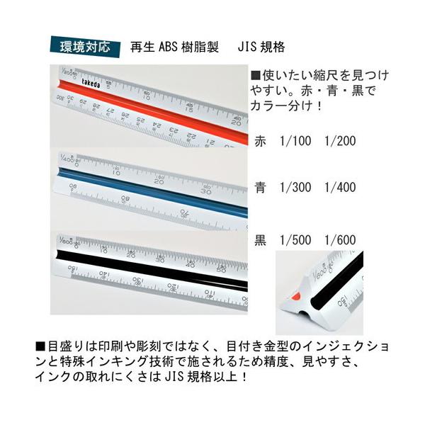 三角スケール 一般向け 30cm 副尺なし 再生50% ABS樹脂 縮尺:1/100 1/200 1/300 1/400 1/500 1/600 サンスケ さんすけ 三角 takeda