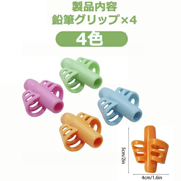 【4個セット】鉛筆グリップ 子供用 手書き鉛筆グリップ 姿勢矯正 筆記補助 子供 幼児 就学前 ブルー グリーン ピンク オレンジ