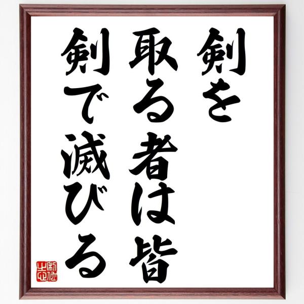 イエス・キリストの名言「剣を取る者は皆、剣で滅びる」手書き書道色紙額/受注後の毛筆直筆