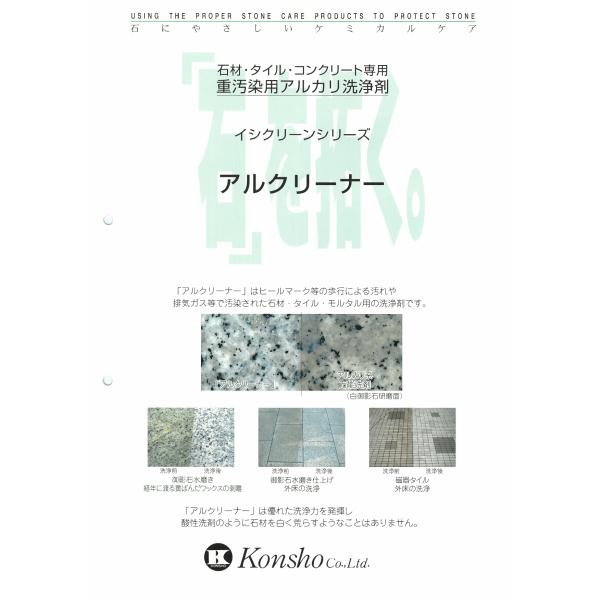 アルクリーナー 4L(※配送時間指定不可) 重汚染用アルカリ洗浄剤 紺商 イシクリーンシリーズ 業務用洗剤 煤煙汚れ、ヒールマーク汚れの除去