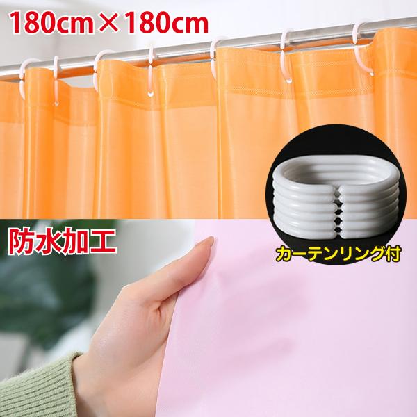 シャワーカーテン 防水 180cmx180cm 180 無地 シンプル 風呂 カーテンリング付属 ピュアカラー シャワールーム 洗面所 浴室 ユニットバス