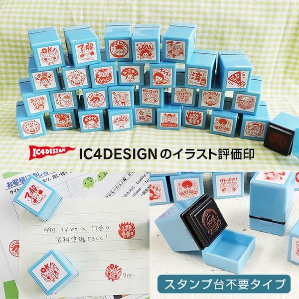 コメント浸透印 スタンプ台不要タイプ 先生スタンプ(イラストあり評価印) 印面サイズ:20×20mm インクカラー:朱色 ホルダーカラー:ブルー色