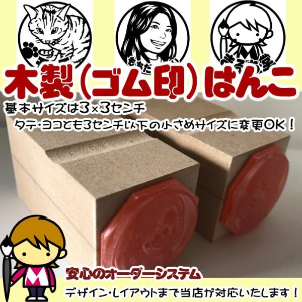我が家のペットでオリジナル似顔絵はんこ★ディフォルメ似顔絵 木製判子ゴム印★記念★ビジネス/家庭用★犬猫ハムスターアニマルグッズ