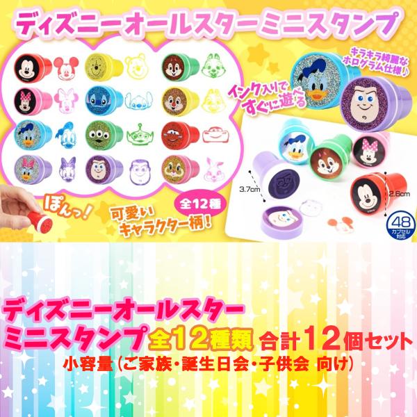 スタンプ ディズニー ミニ スタンプ インク入り 全12種類 合計12個セット ご家庭 お楽しみ会 向け スタンプ 文房具 文具 ハンコ チェックスタンプ 玩具 ホビー