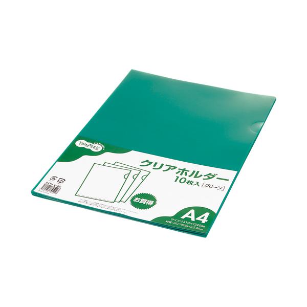TANOSEE カラークリアホルダー(単色タイプ) A4 グリーン 1セット(30枚:10枚×3パック)