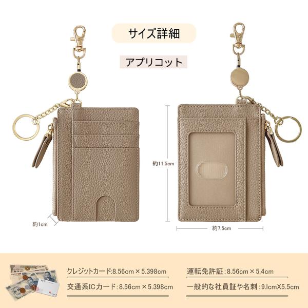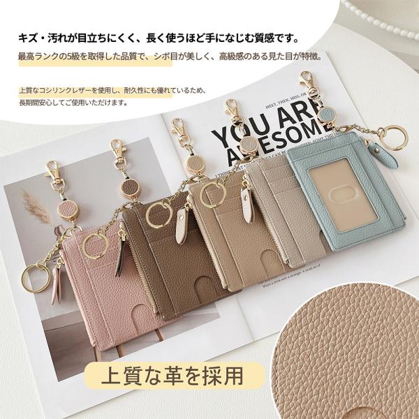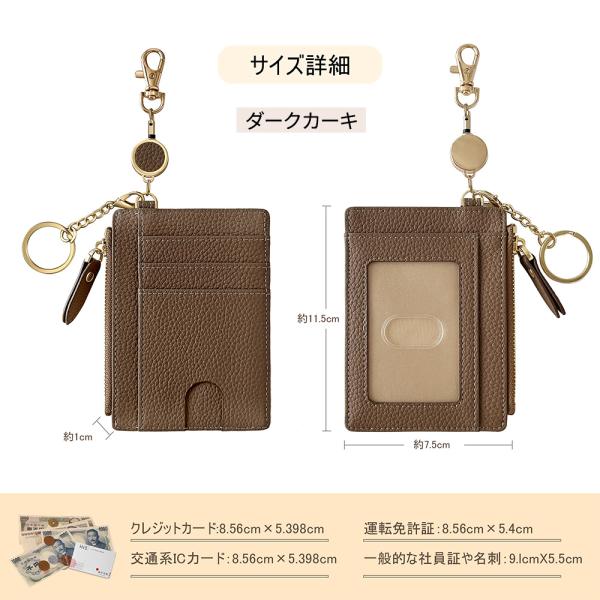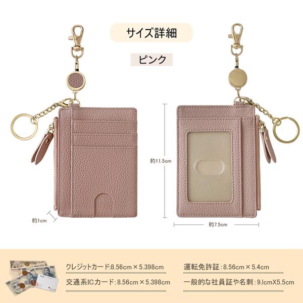 ★簡単に整理できるスリム財布★ミニ財布 大容量 レディース カードケース さいふ カード 小銭入れ コンパクト かわい 30cm伸びる リール レザー キーホルダー