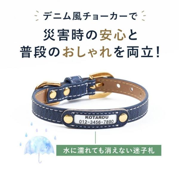 名前入り 犬 首輪 猫 迷子札 チョーカー 犬首輪 猫首輪 名前入り 名入れ ネーム 入り タグ 名札 ドッグタグ 超軽量 いぬ ネコ デニム 補助首輪 maigo-dm