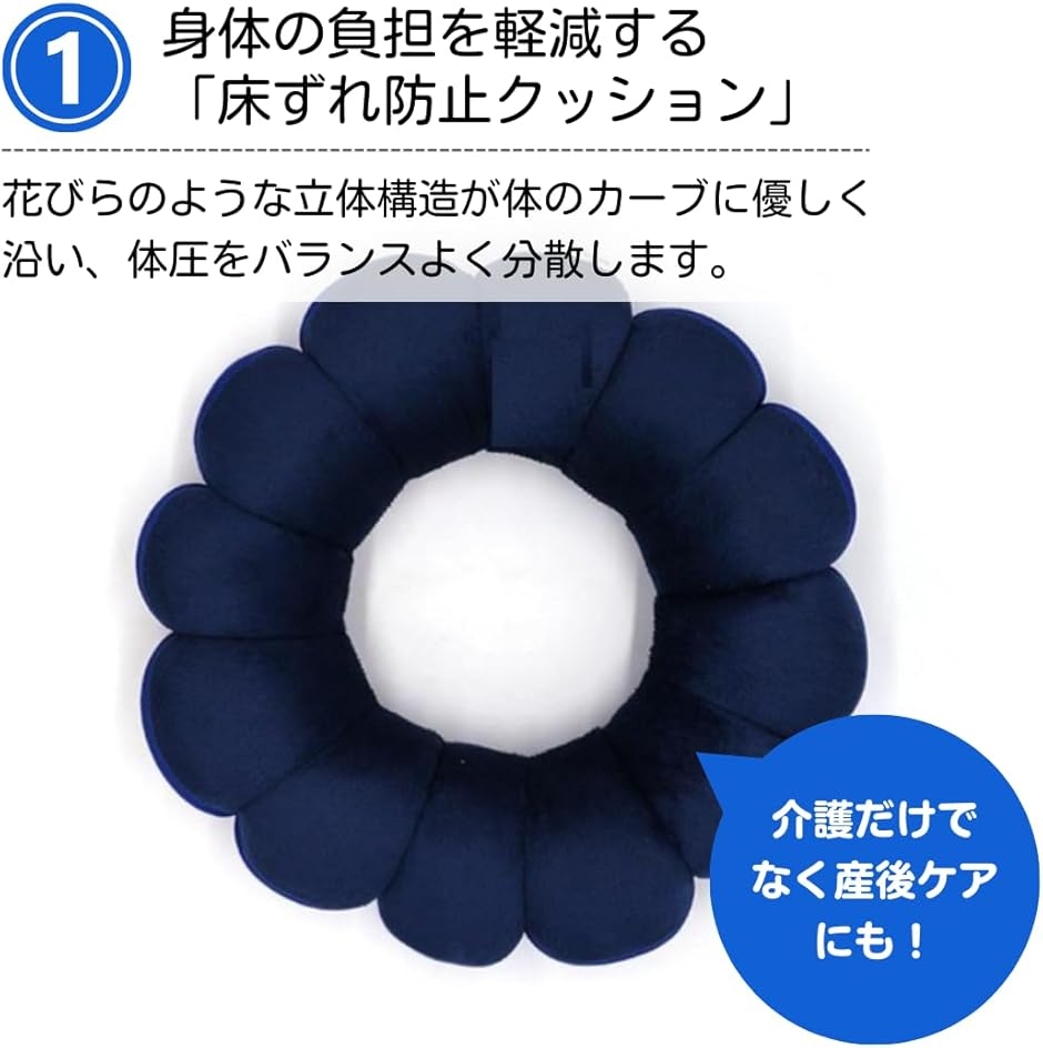 クッション 介護 ドーナツ型クッション 寝返り防止 お尻 円座 産後 高齢者 介助 (ネイビー, 34cmx34cm)