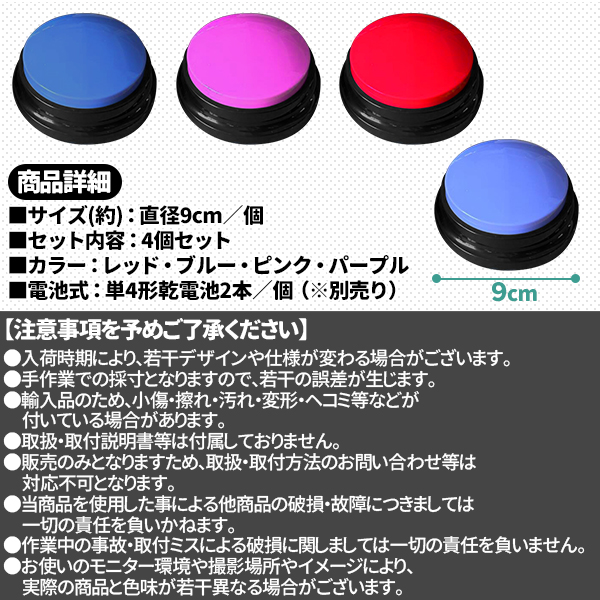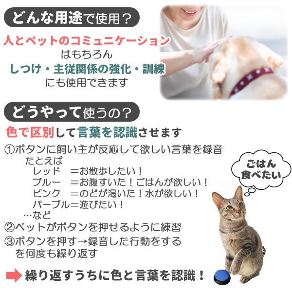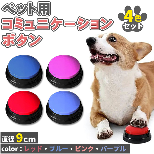 犬 ボタン 会話 会話ボタン 4個セット 4色 話すボタン 多機能ポータブル トーキングボタン 猫用 犬用 ペット用 早押しボタン 音声録音