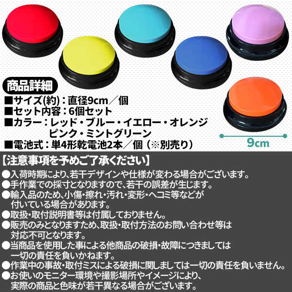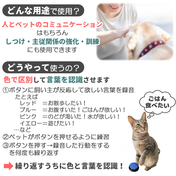 犬 ボタン 会話 会話ボタン 6個セット 6色 話すボタン 多機能ポータブル トーキングボタン 猫用 犬用 ペット用 早押しボタン 音声録音