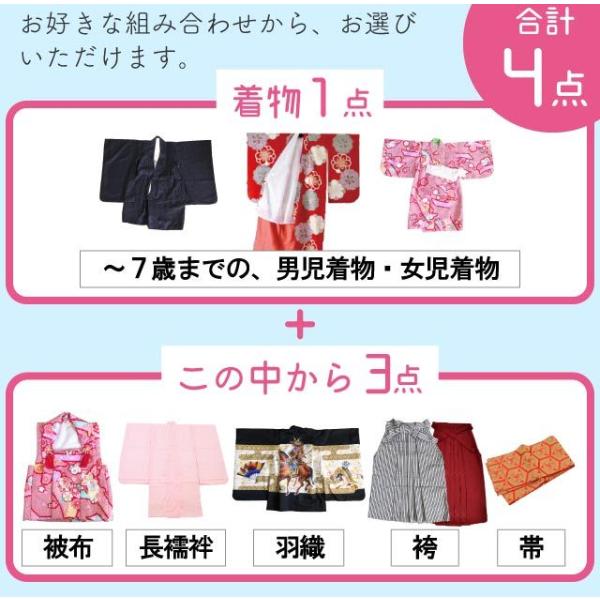 七五三 着物+3点 合計4点セット クリーニング 子供 ジュニア着物 子供着物 女子着物 長襦袢 被布 兵児帯 羽織 袴 sin4004