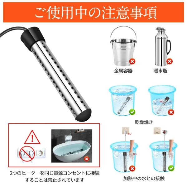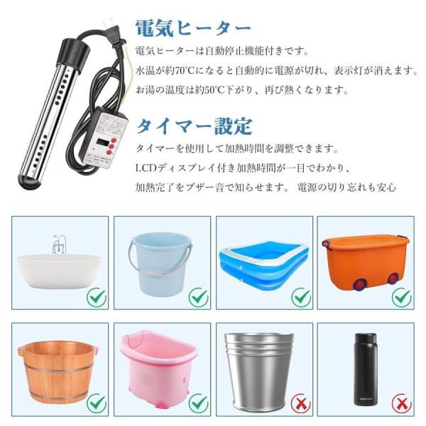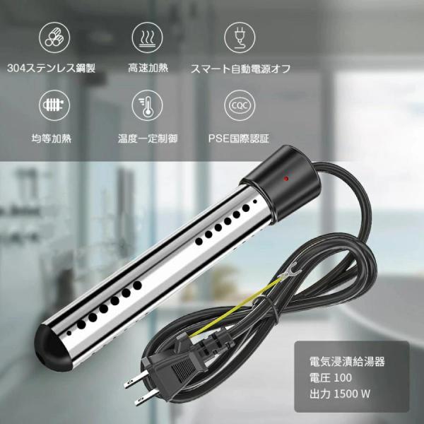 投げ込みヒーター 風呂 電気給湯器 1500W 湯沸かしヒーター サーモスタット付 70°自動オフ 追い焚き 対応 浴槽 バスタブ フットバス 家庭 アウトドア 学校用