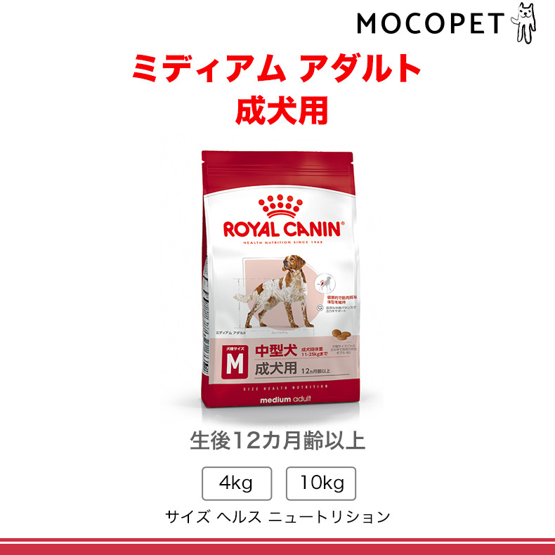 ロイヤルカナン ミディアム アダルト 4kg / 中型犬(成犬時体重11〜25kg)成犬用(生後12ヵ月齢以上) / SHN 犬 ドライフード ジッパー有り