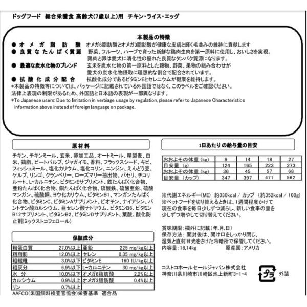 コストコ ドッグフード カークランドシグネチャー 高齢犬7歳以上 18kgチキン,ライス,エッグ