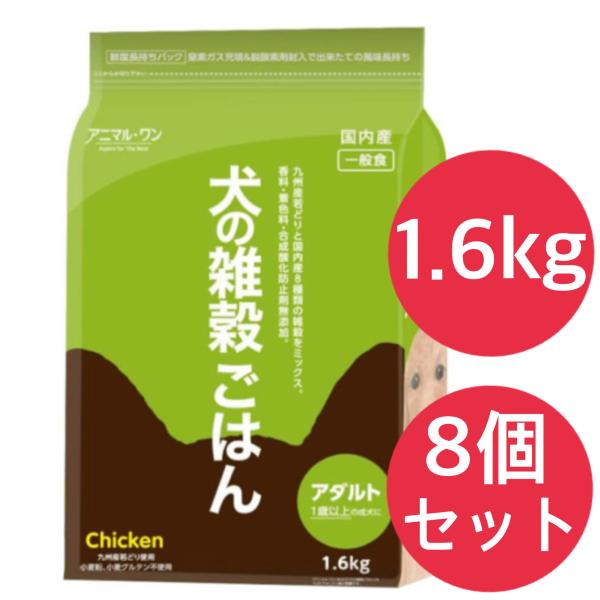 犬の雑穀ごはん アニマルワン ドッグフード (アダルト) チキン 1.6kg パッケージがリニューアルしました。【8個セット】