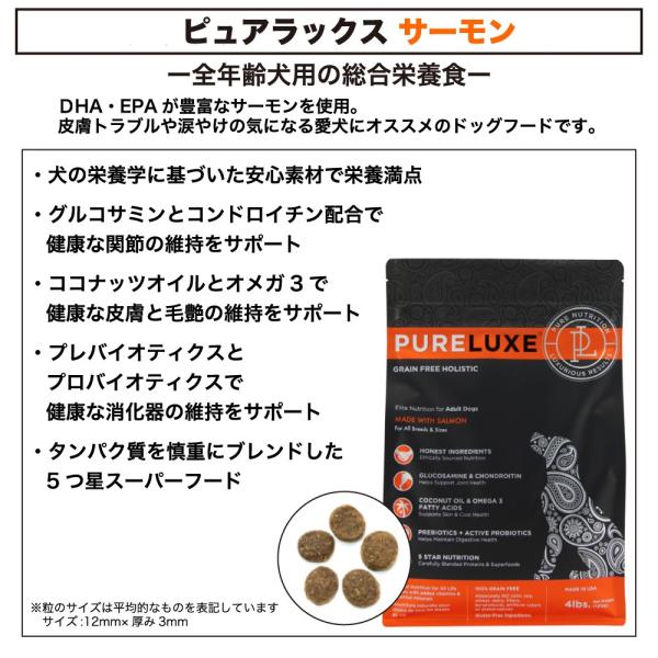 ピュアラックス サーモンドッグ 1.8kg 犬 犬用 フード ドッグフード ドライフード 無添加 無着色 安心 安全 DHA EPA