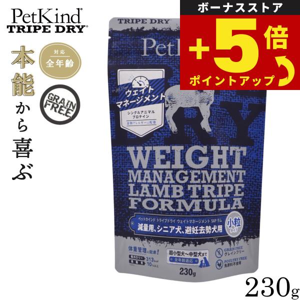 倍々+5倍!最大ポイント30倍!4月15日!ペットカインド ドッグフード トライプドライ ウェイトマネージメント SAP ラム 小粒 230g 無添加