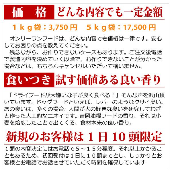 ドッグフード 無添加 国産 吉岡油糧 オンリーワンフード 1kg リピート注文用 個別配合 オーダーメイド ドライフード 犬 体重管理 食いつき