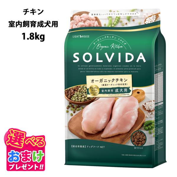 おまけ付き ソルビダ グレインフリー チキン 室内飼育 成犬用 1.8kg ドッグフード 犬 栄養 健康 成犬 運動不足 カロリー控えめ オーガニック 犬 グレインフリー