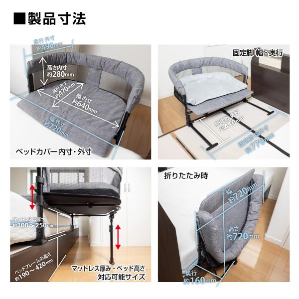 ペット用ベッド ベッドサイド取付 犬 猫 折りたたみ式 宙に浮く 小型犬 中型犬 ベッドに固定 安定 安心 OMD-BSPB25
