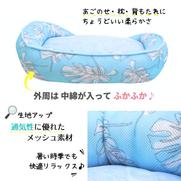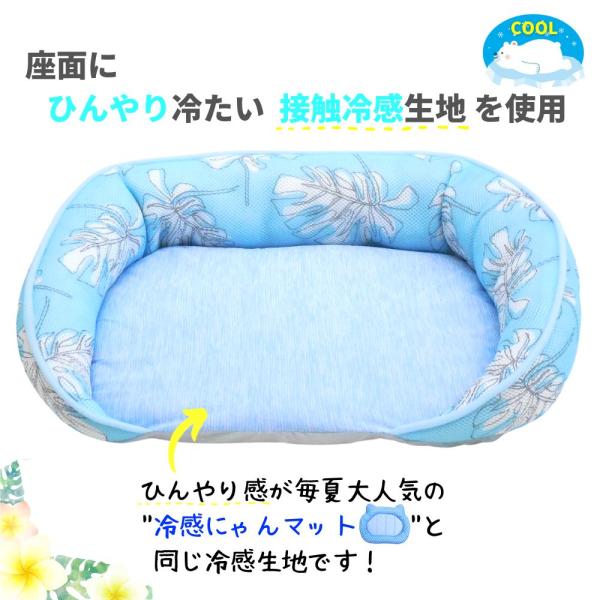 犬 猫 ペット ベッド STYRIA 冷感 モンステラ ひんやり ペットベッド オープン 夏 夏用 洗える クール 老犬 老猫 シニア 介護 おしゃれ フラット マット 段差 M