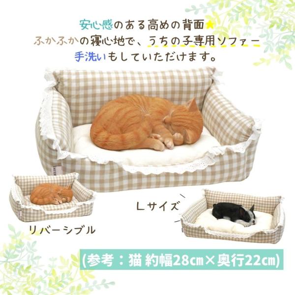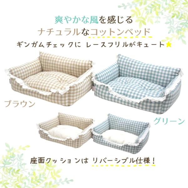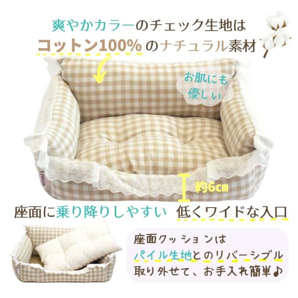 犬 猫 ペット ベッド STYRIA コットン チェック レース ペットベッド 春夏 夏 夏用 洗える おしゃれ かわいい ソファ 小型犬 フリル 綿 パイル リバーシブル M