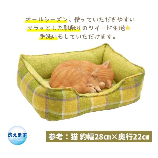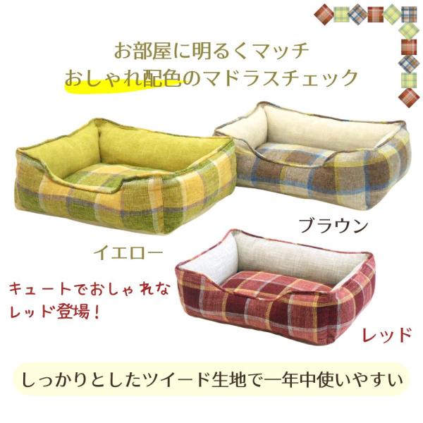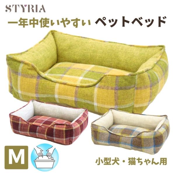 犬 猫 ペット ベッド STYRIA マドラスチェック ツイード ペットベッド 洗える 春夏 通年 オールシーズン おしゃれ 可愛い 小型犬 スクエア 滑り止め M