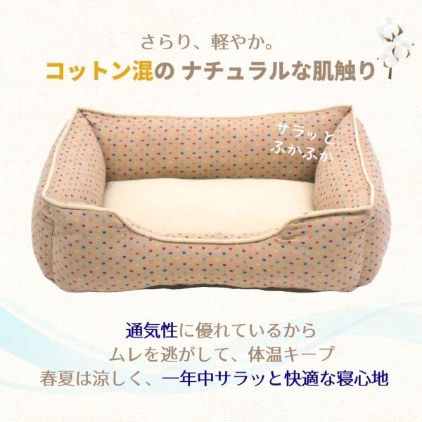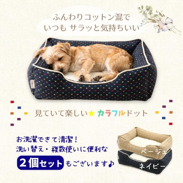 犬 猫 ペット ベッド STYRIA カラフルドット コットン混 ペットベッド 洗える 春夏 通年 夏 かわいい おしゃれ 小型犬 綿 涼しい 通気性 滑り止め