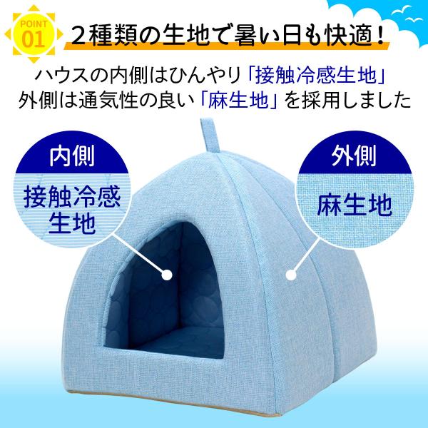ペットベッド ひんやり 夏 洗える 犬 猫 ベッド ペット クール マット ドーム型 テント ハウス ねこ いぬ 冷感 おしゃれ ピラミッドハウス 夏用 Sサイズ
