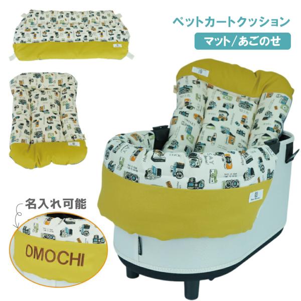 【単品】あごのせ・マット レトロカメラ刺しゅう 名入り ペットカート クッション 汚れ防止 コンフォート ハンドメイド 日本製