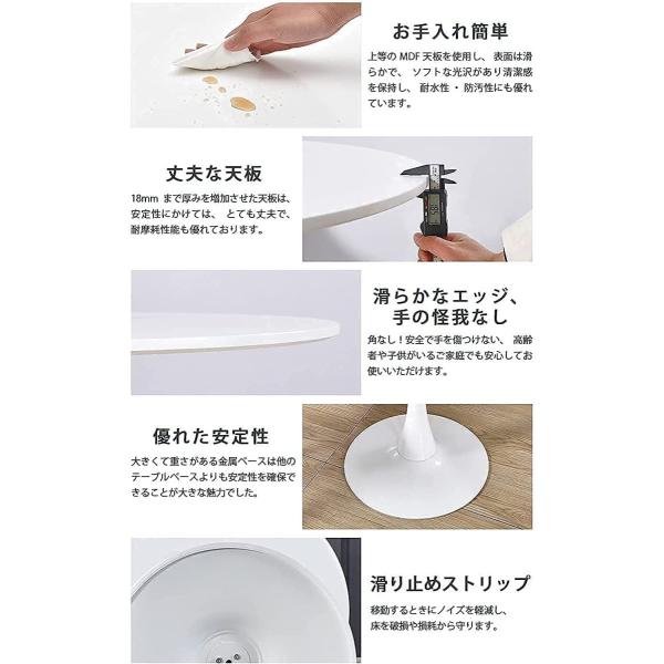 ダイニングテーブル 丸テーブル 白 幅70cm 組み立て簡単 お手入れ簡単 円形 スチール MDF ホワイト 省スペース コンパクト 2人用 3人用 おしゃれ
