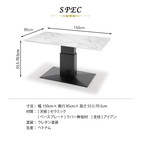 昇降式テーブル 昇降式ダイニングテーブル 4人掛け 150cm 北欧 セラミック天板 石目調 大理石柄 セラミック柄 センターテーブル
