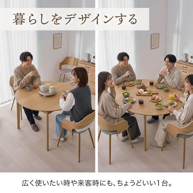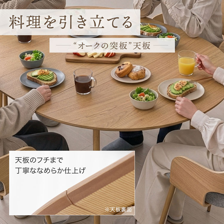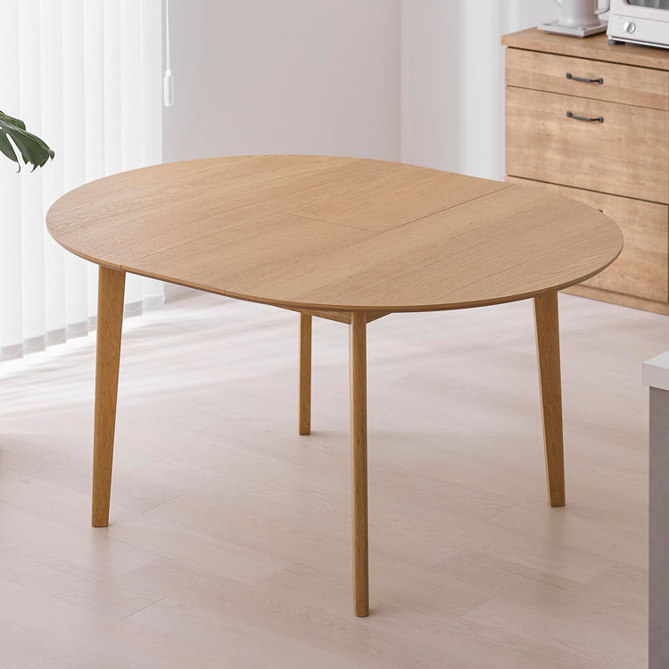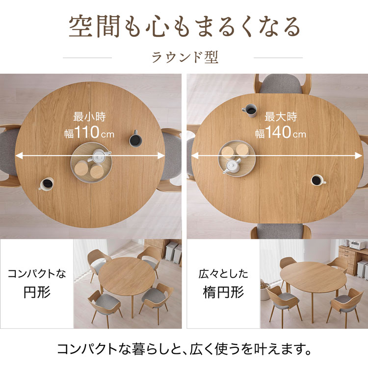 ダイニングテーブル 伸長式 伸縮 伸長 110cm 140cm 円形 楕円 丸 楕円形 テーブル 単品 天然木 オーク 突板 天板内蔵 北欧風