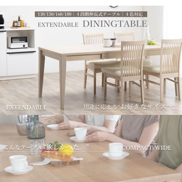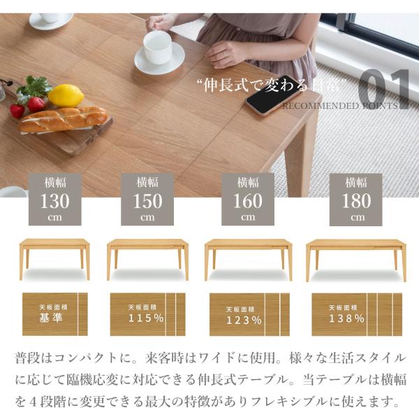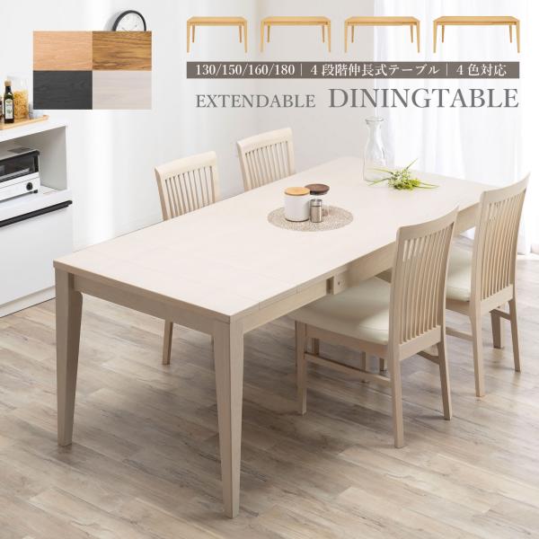 ダイニングテーブル 伸縮 伸長 4人 6人 幅 130 150 160 180 cm 木製 北欧 おしゃれ ナチュラル 伸縮式 伸長式 食卓 テーブル 長方形 4人掛け 6人掛け オーク