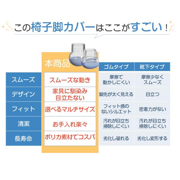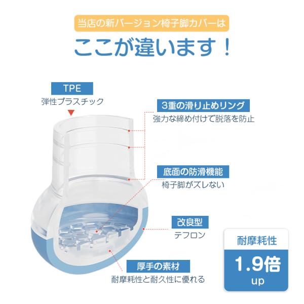 椅子脚カバー テフロン 滑るタイプ 椅子脚キャップ シリコン 椅子足カバー フッ素 椅子足 カバー 滑りやすく 床傷防止 騒音防止 外れない 脱げにくい ズレにくい