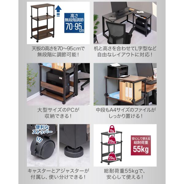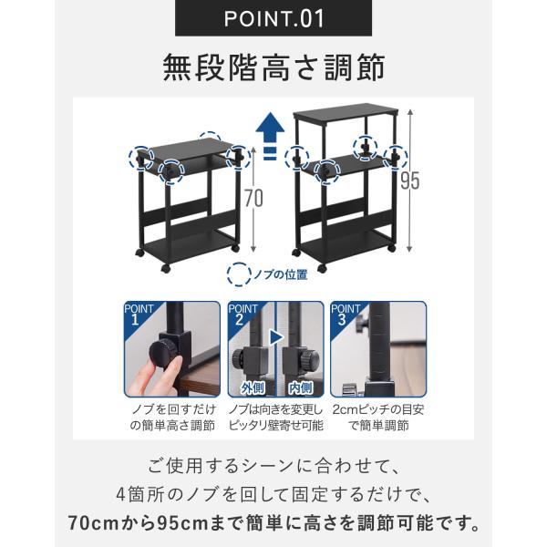 サイドワゴン キャスター付き 昇降式 高さ調節 高さ70cm〜95cm 幅35cm スリム サイドデスク 昇降ワゴン PCラック プリンター台 PCワゴン 1年保証 送料無料