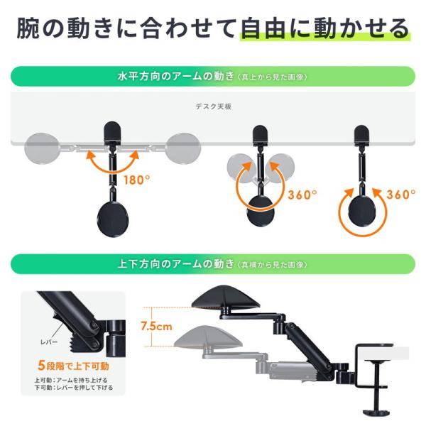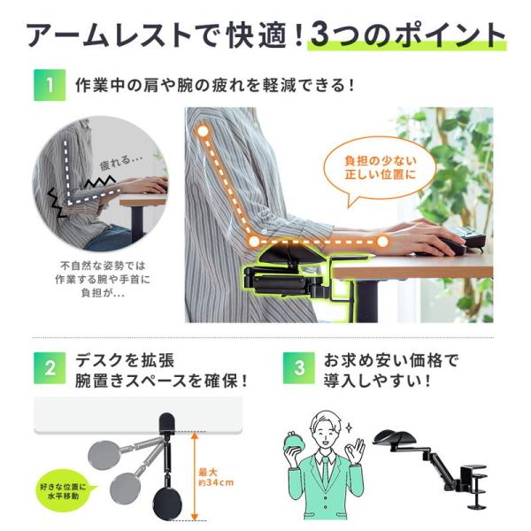 アームレスト 後付け デスク 可動式 高さ調整 肘置き パソコン テレワーク EEX-DESA06