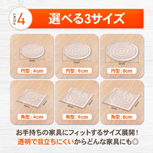 家具 滑り止めシート 8枚セット 強力 安心 安全 チェアマット パッド 再利用可 透明 クリア 凸凹 床保護 ズレ防止 キズ防止 防震 床暖房対応 シリコン